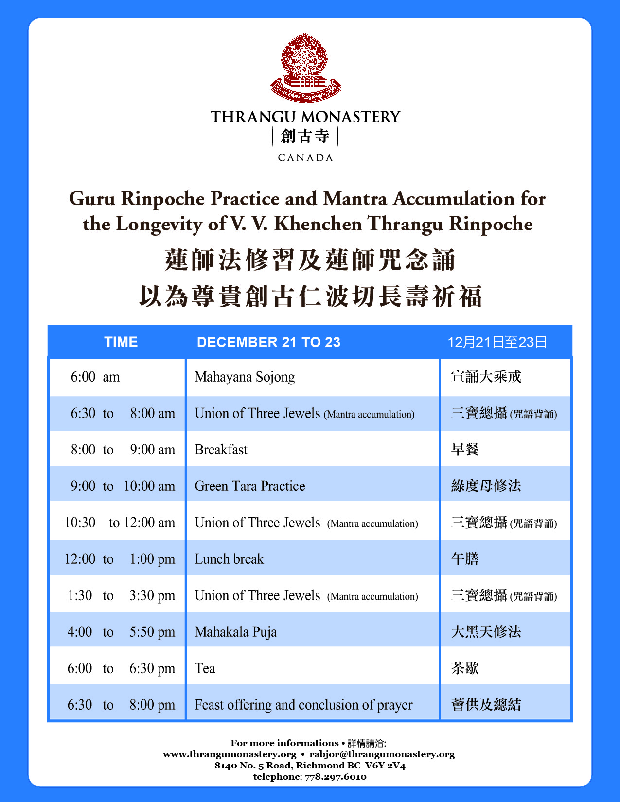 修法及教學時間表